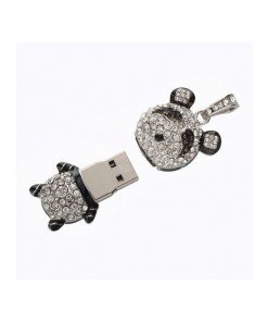 This glitter rhinestone panda housing flash drive supports standard USB 2.0 transmission rate.
