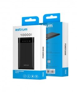 Astrum باور بانك 10000 مللي 2 خلية – منفذين Usb 2.1 أمبير – أبيض وأسود
